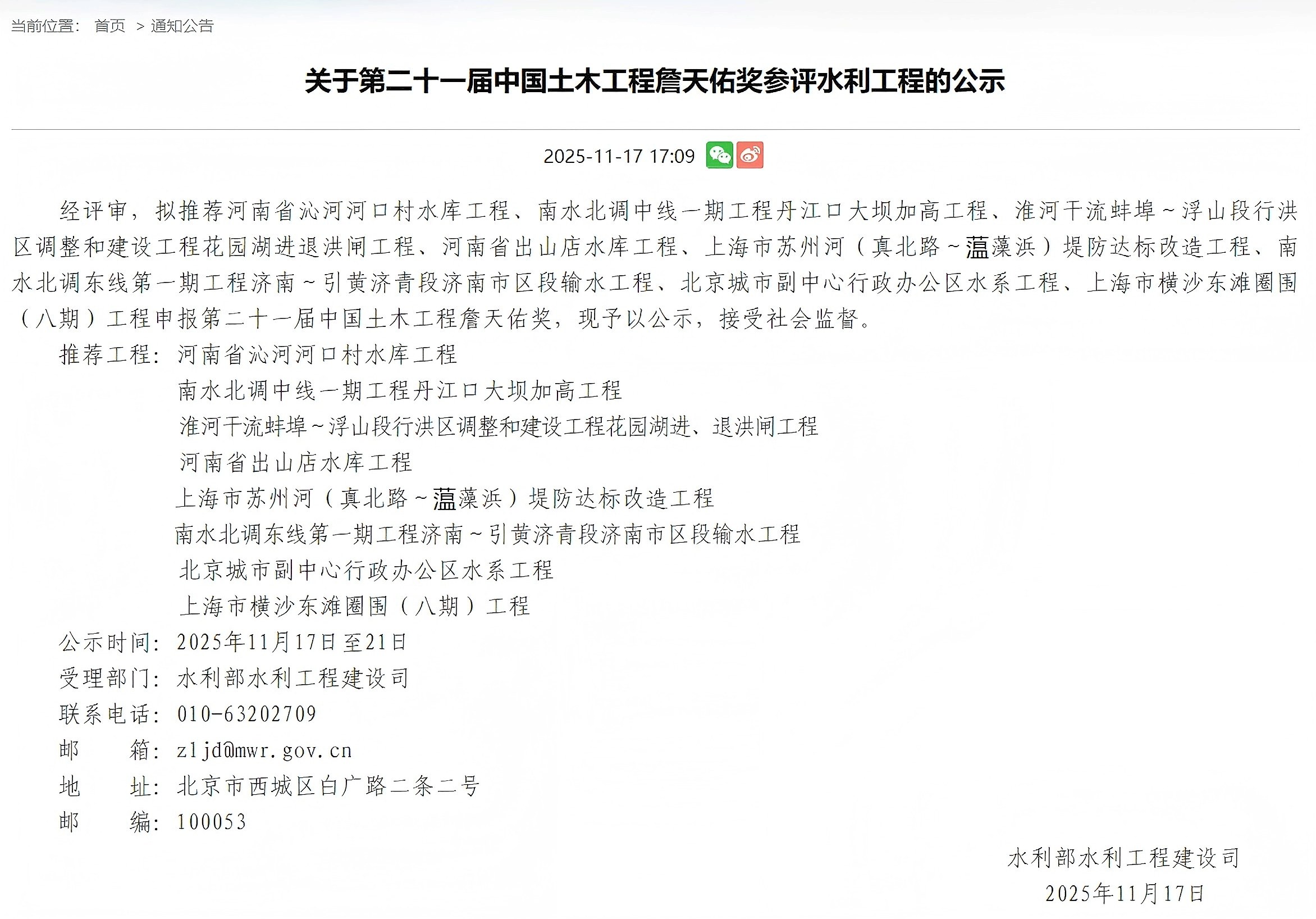 深化创新驱动,涵养突破动力。公司依托重大项目开展核心技术攻关,“轨道行走一体化衬砌机智能养护”等六项工法获评2025年度水利行业工法;累计荣获专利授权23项、QC成果7项;三个项目获评华东地区优质工程奖;南水北调东线济南市区段输水工程入围中国土木工程詹天佑奖公示名单,以技术创新赋能工程提质增效。