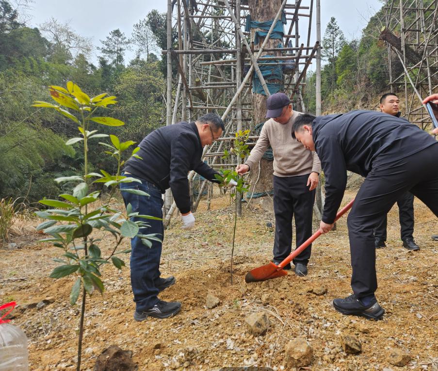 3月11日,杭州鲁润水电开发有限公司党支部联合杭州市临安区水利水电开发有限公司党支部在双溪口水库古树移栽地开展了一场以“携手植希望,心连树未来,同守古名木,共绘绿韵图”为主题的植树节党支部联建活动。此次活动旨在通过实际行动,践行绿色发展理念,共同守护自然环境,同时为已经成功迁移并茁壮成长的古树们赋予更多的关爱与希望。
